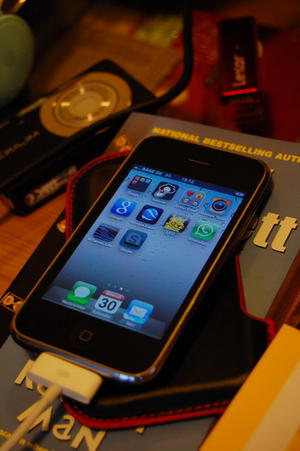 schallten heute Abend durchs Haus. Ein eigentlich graesslich schrilles Klingeln, welches ausgeloest durch den Paketboten auf einmal lieblich wie Schalmeien, gespielt von Jungfrauen aus Cupertino durch die Hallen schallt. Das Apfelphone ist wieder da. Es