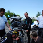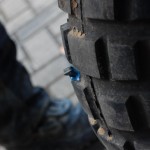 am zweiten Morgen ((eigentlich war es schon mitten am Tag)) der Megafete 2010, stand eine kleine Ausfahrt in den Schwarzwald an. Ein paar Frischlinge im Schlepptau wurde X-treme Rumschwuchteling geplant. Ich habe also die GS vom ihrem Standplatz neben dem Zelt ((weil ich Strom im Zelt ueber die GS beziehe)) auf den Burnoutplatz gefahren und will aufroedeln, als ich eine Schraube in meinem hinteren Pneu entdecke. Prima, fast neuer (TM) Reifen ((keine 2000 km Offroad)) und dann ein Loch. Die Schraube wurde entfernt ((Leatherman regelt)) und schlagartig verliert der Reifen Luft ((achwas?)). BMW Pannenset ((Anno 2004, als es das noch dazu gab und nicht nur ne Servicecard)) auf dem Bordwerkzeug gezogen und geflickt. Hielt die Schwarzwaldtour ((140 km)), die Heimfahrt ((450 km)) und wird wohl bis zum natuerlichen Ende des Reifens auch halten.