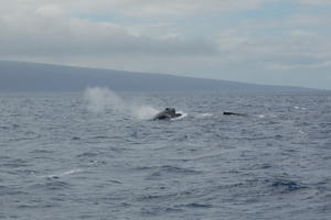 Captain Ahab konnte es kaum fassen, war er dem weissen Ungetuem doch schon wieder so nahe? Ok, es geht natuerlich nicht mit den Japanern auf Walfang sondern mit der Pacific Whale Foundation zum kucken. Um 13:15h checken wir ((wieder mal)) ein und um 13:45 geht es los. Wir fahren mit einem relativ grossen Boot raus auf den Pazifik und kreuzen vor Maui hin und her, bis nach etwa 20 Minuten eine kleine Gruppe Buckelwale auftaucht.