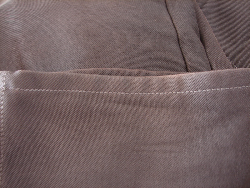 ich habe die Hose nun erstmal wieder abgeholt. Man koenne da nichts machen, denn die Hose ist nunmal so „auf Jeans getrimmt“, dass sei normal. Ich nahm die Hose also wieder mit und wie ich auf dem Weg nach Hause bin, faellt es mir ein, Jeans … Hose … Denim … ich hab doch vor 3 (DREI) Jahren einen Black Denim Anzug von BMW gekauft, 100% Jeansoptik. Seit ein paar Monaten tue ich mir wirklich schwer die 50er Hose noch korrekt zu schliessen, man wird einfach aelter dicker vollschlanker aber ich trug den Anzug bis auf Regenwetter durchgehend, man munkelte damals schon, ich waere da eingewachsen oder wuerde bezahlt tagein tagaus Werbung zu fahren. Diesen Anzug habe ich nun aus dem Schrank gezogen, mir vorgenommen abzunehmen, die beiden nebeneinander gelegt und abgelichtet. Der geneigte oder lotrechte Leser moege selber urteilen, was man von „Jeansoptik muss so aussehen“ zu halten ist.