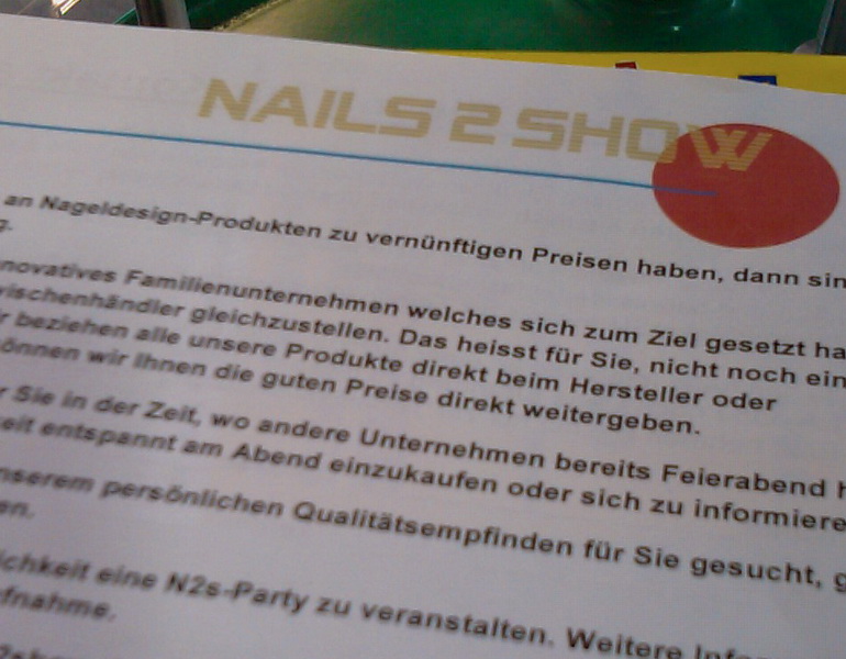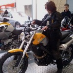 Nach dem ganzen Trubel dann noch ein wenig in die Werkstatt um Torstens Versuche, einen Koffertraeger an die AT zu frickeln bauen mit Beifall und guten Ideen zu unterstuetzen. Eins noch, bei den folgenden Bildern, das Nageldingens ist nicht versehentlich reingerutscht, es lag doch im Ernst zwischen all den Zupin, Touratech, Husquvarna und BMW Broschueren ein Stapel mit Werbung fuer ein Nagelstudio. Irgendwie nicht 100% die Zielgruppe erreicht .. aber Werbung schadet ja nicht, oder?