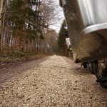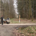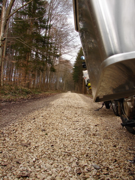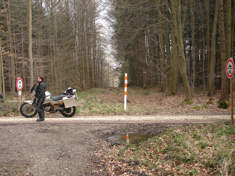 auf dem Weg von $tiefste_schwaebische_Alb nach $Heimat lotste uns das Garmin zumo 550 400 von Madame froehlich ueber immer kleinere und kleinste Strassen. Das ist an sich ziemlich gern gesehen und als die Straesslein nicht nur kleiner sondern auch „schotteriger“ ((gibts so ein Wort?)) werden beginnnt es richtig Spass zu machen. Mit einem Mal, gerade mal 1 km auf der Schotterstrasse gefahren, taucht das obige Schild vor uns auf. Nachdem das Navi uns lotste und im Allgmeinen solche Patzer nicht vorkommen, war man nun doch irritiert. Noch viel mehr staunten wir aber, als hinter uns auch ein solches Schild prangte. Nun gehts also wahlweise weder vor noch zurueck oder „hoechst illegal“ weiter. Waehrend man also staunend vor den Schildern steht und der Plan reift einfach weiter der Strasse zu folgen und um dem noch einen drauf zu setzen, allen weiteren gestrichelten Linien auf dem Navi wohlwollend folgen zu wollen, rumpelt es aus der Ferne.