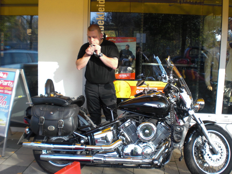 nein, nicht die GS, die DragStar. Bis heute wusste ich nicht mal dass dieses Eisenviech das vor dem Polo Shop in Muenchen steht einen Namen hat und nicht irgendwie XRSLCHZEWR oder wie diese Truemmer aus Milwaukee sich immer abkuerzen, im Ausweis stehen hat. Aber egal, sie faehrt ja nicht hoere ich bei dem Versuch irgendwas sinnvolles bei Polo einzukaufen und die angepriesenen 20% Rabatt einzustecken.