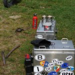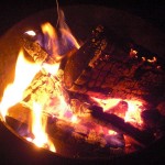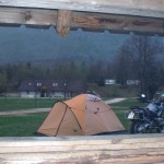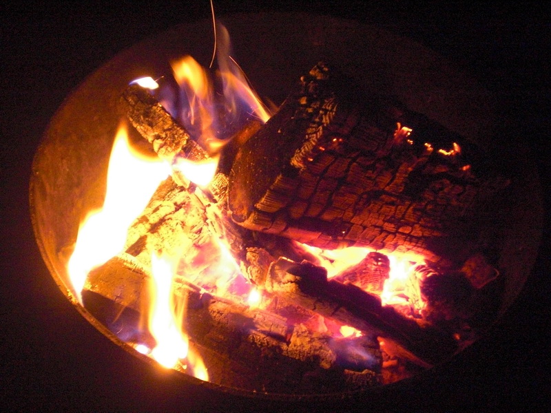 Auf dem Weg zurueck kaufen wir noch ein und eilen dann teils vor, teils im Gewitter zum Camp. Alle 10 Minuten kommt fuer 5 min ein Platzregen vorbei. Der erste Regen in diesem Urlaub, da ist man nicht so ungnaedig und parkt den Grill einfach unter eine Ueberdachung und wartet ab. 3 h spaeter ist aus dem Feuerholz eine passable Glut, aus dem rohen Fleisch ein bekoemmliches gegartes Mahl und aus dem Loch in meinem Magen eine Plautze geworden.
