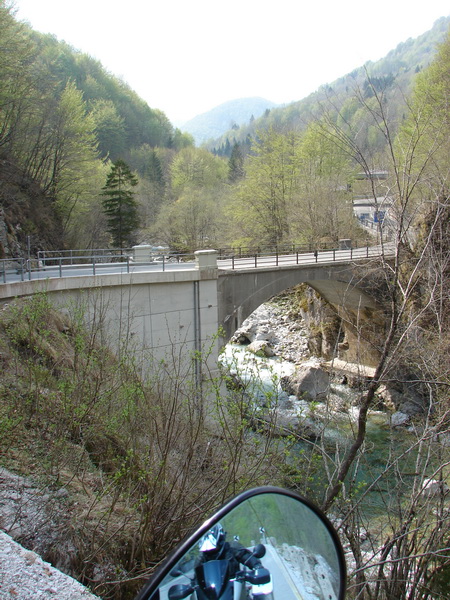 Nach dem gestrigen, recht langen, Fahrtag wird keine Hektik an den Tag gelegt, in aller Ruhe aufstehen, duschen, Karte studieren und dann kann es langsam los gehen. Zuerst geht es zum tanken. Statt direkt in Bovec zu tanken ((die Tanke ist in meinem Navi nicht drin)) fahren wir nach Kobarid. Da tankt man gut, preiswert und die Strecke ist klasse. Klasse jedenfalls wenn nicht ploetzlich Bauarbeiten stattfinden. Erdrutsch und Geschaeftigkeit gehen einher. Weniger geschaeftig ist der Lollimann. Steht da mit seiner roten Kelle und laesst uns 20 min in der Sonne stehen. Wir hoffen einfach, das die Sache nach dem tanken ein wenig schneller geht.