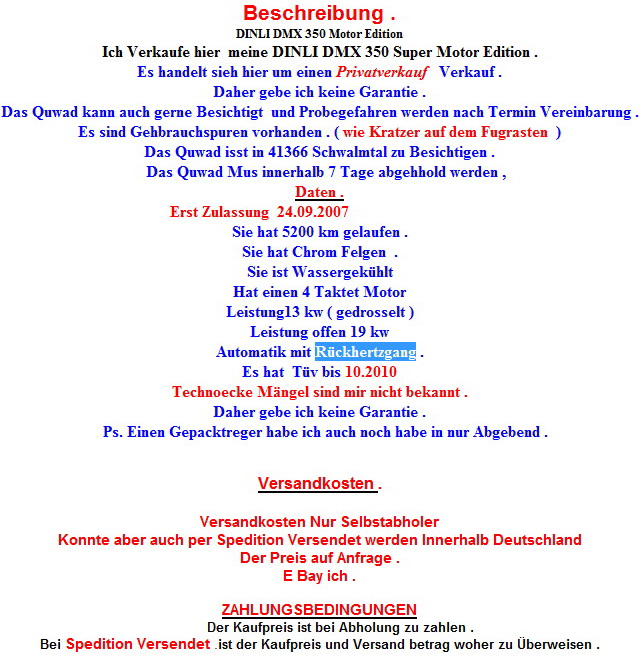 4. dem Verkaeufer sind keine Technoecke Maengel bekannt (mir schon, Techno ist ein Mangel)