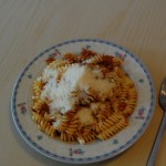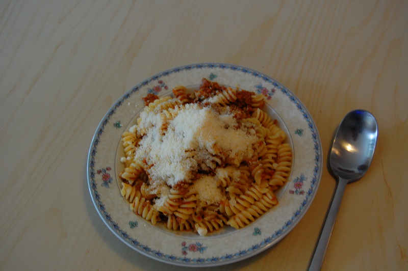 wenn ich einmal alt bin, moechte ich bitte in ein Altenheim Seniorenstift in Bergamo. Ich erhoffe mir davon weniger, auf meine alten Tage noch einer weiteren Fremsprache maechtig zu werden sondern vielmehr anstaendig versorgt zu werden ((nicht DAS…)). Ich erhielt gestern Abend ein CarePaket von einem begnadeten Ragukoch ((Ragu, gemeinhin als Sosse auf Spaghetti Bolognese bekannt)). In dem Paket befand sich alles notwendige fuer ein exquisites Mahl. Nudeln ((seine Lieblingsmarke)), Parmesan ((handgerieben)), Salz ((hier wird nicht 08/15 Salz verwendet)) und ein Glas Ragu ((fertig zum aufwaermen)). Zubereitung also in unter 15 Minuten und genauso schnell ((fast)) war es verputzt. Meine Guete, so lecker hab ich beim Italiener zuletzt vor langer Zeit in Italien gegessen. Ganz grossen Dank dafuer 😉