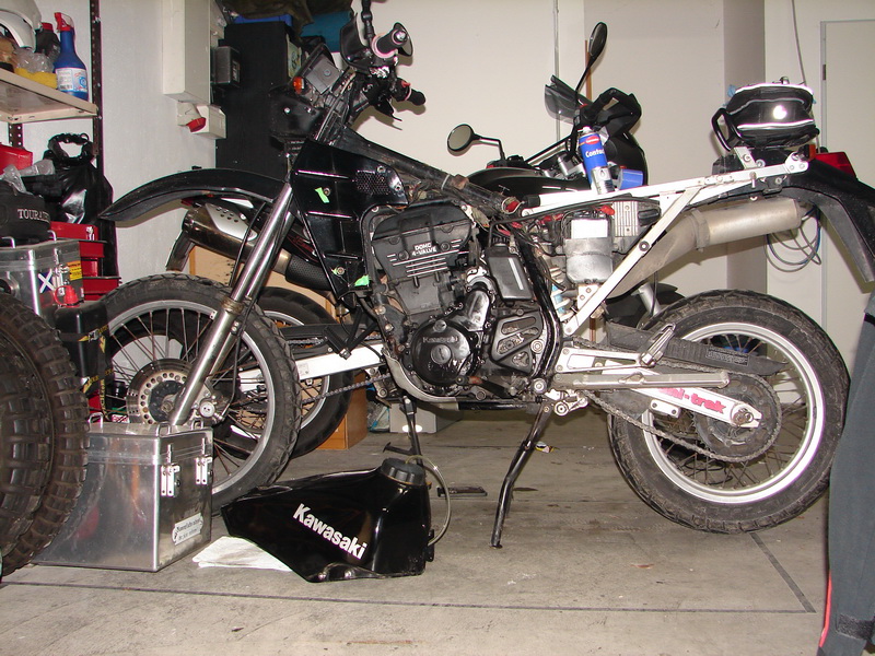 diese Karre ist schon phantastisch. Da die KLR nicht wirklich schneller als 100 oder mit Rueckenwind und Heimweh 110 km/h schafft (lt. Navi) ist eventuell der Vergaser mit Loechern versehen oder die Membran defekt. Aber was sehen meine entzuendeten Augen, alles wie es soll, der Vergaser sogar blitzeblank, da hat wohl einer immer Super plus getankt (kleiner Insider).
