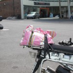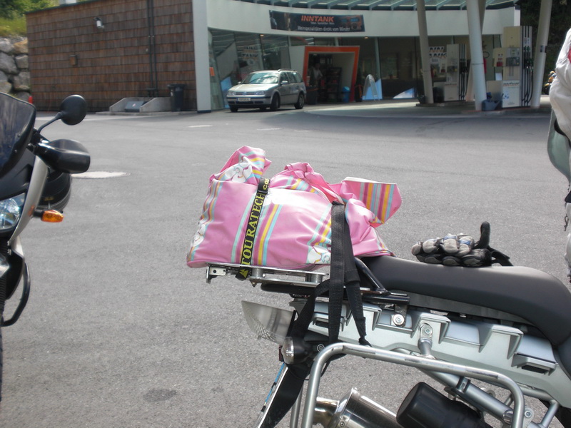 😉 Da ja nun auch $KIND_2 gross genug ist ((hat sie beschlossen)), um ohne die peinliche „Sicherung“ durch Topcase chauffiert zu werden ((ich dachte immer sie mag den Aluwuerfel)), muss das Wochenendgepaeck irgendwie anders verstaut werden. Zu diesem Zweck eignen sich ganz hervorragend diese 1,80 EUR Gurte von TT. Ich weiss nur nicht was peinlicher ist, ein Topcase oder eine pinkfarbene Badetasche.