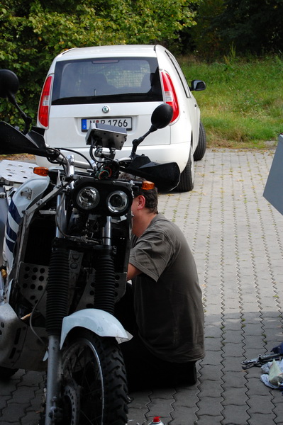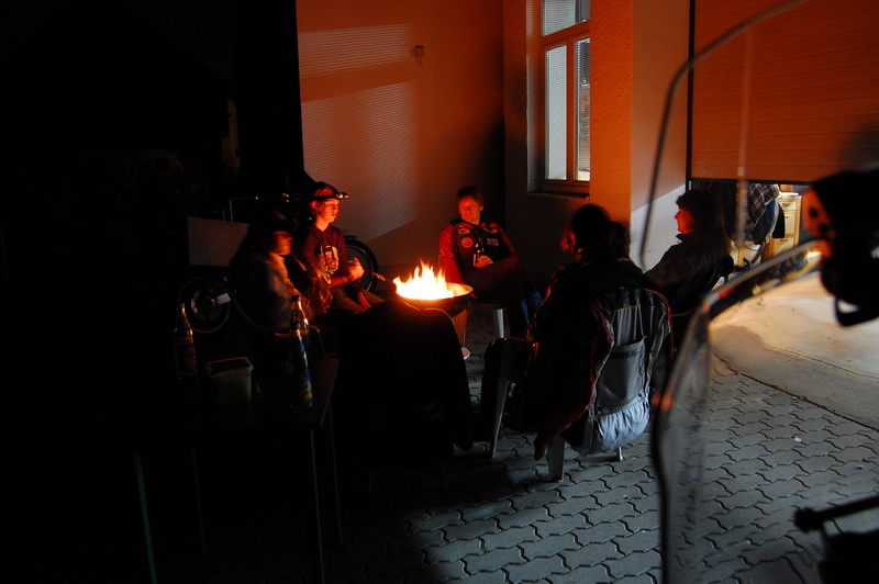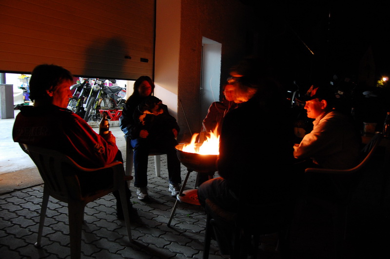 eigentlich 2 Versuche. Einmal den Spritzschutz fuer das Oehlinsfederbein zu verbessern und einmal die Reichweite der R1200GS auszuloten. Statt des Stossfaengers, der zu einem Schutz umgemodelt wurde, ist diesmal eine Fussmatte angepasst worden. Denn mit Stollenreifen schliff immer mal wieder der Gummi am Schmutzfaenger und rueckwaerts schieben ging auch nicht ((solange noch 100% Profil vorhanden sind)). Erste Probefahrt war sehr vielversprechend. Schottertest steht noch aus. Seit heute weiss ich auch, das die Restreichweitenanzeige sehr genau geht, 1 km Restreichweite und 19.50 l Sprit nachgefuellt ;). Und mit Grillen und Feuer wurde der Tag verabschiedet.