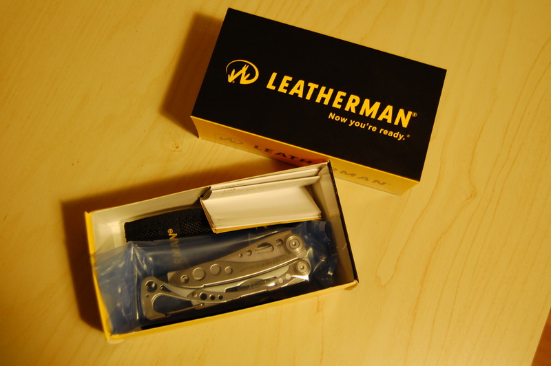 in meinem Postfach ((in der Arbeit)) fand ich einen Gutschein vor und zwar von Amazon. Eine kleine Aufmerksamkeit und da lass ich mich ja nicht lange bitten. Beim Stoebern bin ich dann bei den Multitools haengengeblieben und so erwarb ich mit minimaler Zuzahlung ((zum Gutschein)) ein Leatherman Skeletool ((ohne CX)). Ewig unschluessig zwischen den ganzen Sets, mit Fernglas ((wozu?)) oder mit Maglite AA LED ((nett aber so wirklich brauch ich grad keine)) und mit beidem ((Superset)) und dann noch ein Dutzend anderer Leatherman Modellen hin- und hergewechslt und dann entschieden. Ich nehm das silberne ((schwarz abgesetzt haette es noch gegeben)) mit der geraden Klinge ((CX haette Wellenschliff aber das schleift man nicht mal eben so)) und ohne tolles Set. Heute kam es an und ich bin begeistert. Zange, Biteinsatz und verflixt scharfe Klinge. Was will ((oder brauche)) ich mehr?