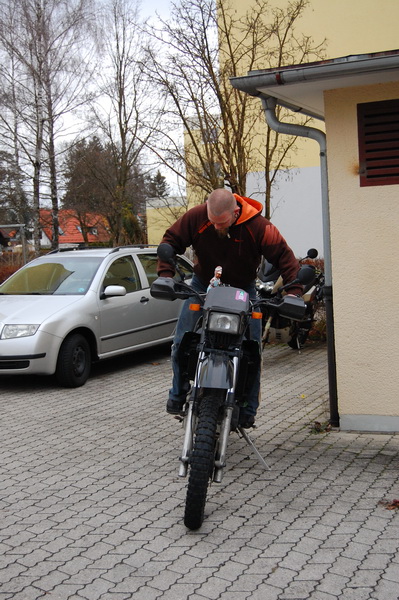 die KLR ist ja seit 21. Okt. nicht mehr bewegt worden, der E-Starter funktionierte seit dem Umbau schon nicht mehr. Und diesem Umstand sollte nun auf den Grund gegangen werden. Der in aller Hektik durchgefuehrte Motortausch, damit Greg seine Europatour fahren konnte, hatte den kleinen Schoenheitsfehler, dass der E-Starter nicht mehr so tat wie er sollte. Ankicken ist mir aber auf Dauer zu bloed, also den Motor wieder einmal geoeffnet. Ergebnis nach diversen Zahnrad-Umsteck-Vermess-Pruef-Aktionen: Der Freilauf hat wohl wieder nen Hau. Ob es sicher der Uebeltaeter ist, weiss man erst, wenn dieser freigelegt ist. Leider reichte die Zeit nicht, dies auch noch zu erledigen aber wenigstens konnte alles Andere recht gut ausgeschlossen werden. Abgesehen davon stelle ich eben fest, das die KLR in einem Jahr gerade mal 4000 km weit gekommen ist. Und davon bestimmt 2000 km nicht von mir, sondern von Greg. Aktueller Kilometerstand 67.004 km als ich mit dem Ankicken fertig war.