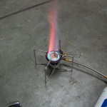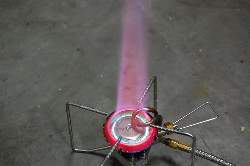 Man verbinde Spritflasche und Brenner vermittels der Stahlflexleitung, pumpe 50 mal um ausreichend Druck zu erreichen, oeffne das Drehrad an der Flasche und stelle den kleinen Hebel auf Start. Nun am Brenner die Duese aufdrehen und sobald es nach Sprit stinkt ((kein Benzin zu sehen, nur zu riechen)) wird angefackelt. Sofort hat man ein saubere, hohe und gleichmaessige Flamme, welche die Wendel so schnell erhitzt, dass es eine Pracht ist. Der Druck in der Flasche sorgt dafuer, das ein ordentliches Gemisch am Brenner austritt, das sofort heizt und nicht erst russt und stinkt, bis die Wendel erhitzt ist. Nach 2 Minuten wird dann von Start auf Run gestellt und am Brenner die Flamme reguliert. Von „klein und fein“ fuer eine Bialetti bis „volles Rohr“ zum Erhitzen eines 8 Liter Gulaschtopfes ist da alles drin. Auch wenn der SnowPeak im direkten Vergleich zum Primus ((Gravity oder Onmifuel)) optisch der 2. Sieger ist ((dieses Turbinendesign vom Omnifuel gefaellt mir schon recht gut)), technisch ist der Kerl absolut der Klassenbeste.