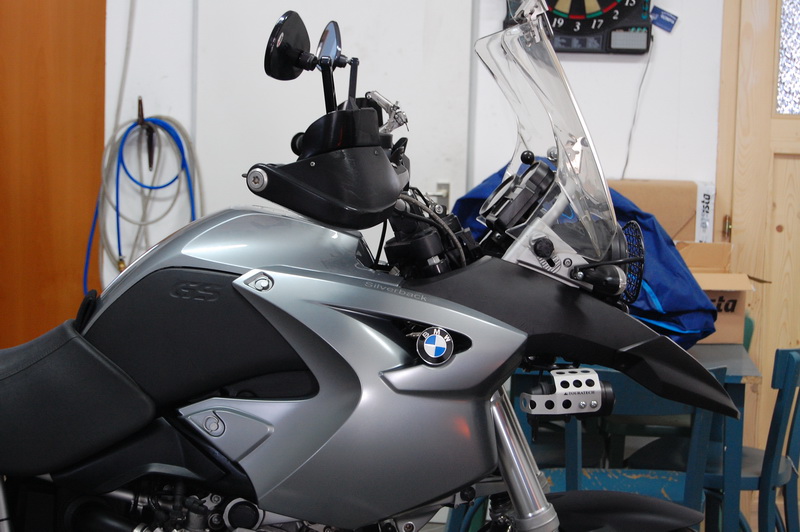 schlimm, wenn das Wetter einem die Moeglichkeit des Kradfahrens vereitelt und man trotzdem unbedingt was am Mopped machen will, also wird die Werkstatt auf- und umgeraeumt und am Krad gebastelt. Mitte Dezember rief man in einem Forum eine Sammelbestellung von Mudslings aus und ich habe mich da gerne eingereiht. Vor 3 Tagen kam er an und wurde jetzt montiert, wobei leider meine Tooltube anders befestigt werden musste, derweil provisorisch vermittels eines Kabelbinders. Mal sehen wie das noch verbessert werden kann. Die furchtbare Folierarbeit, die ich abgeliefert habe, wurde teilweise entfernt und nun sind noch Schnabel und Aluseitenteile in mattschwarz. Die Ersatzdeckel muss ich irgendwie bearbeiten, dass diese wieder befestigt werden koennen, dann kann man einen Satz mattschwarz lackieren. Nach 2 Jahren habe ich auch endlich die verzinkten Schrauben fuer die Spiegel gefunden und ausgetauscht. Was man nicht alles macht, wenn draussen der Winter tobt.