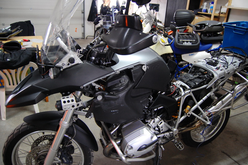 Garmin zumo 550, GPSMap 278, jedes beliebige andere Navi ((das ich kenne)), die Verkabelung ist meist auf den Anschluss von Plus und Minus reduziert. Dies ordentlich verlegt, vermittels wasserdichter Stecker, wie dem Superseal von AMP , an die Bordelektrik angeschlossen und fertig. Nun kommt aber das zumo 660 ins Spiel. Man kann nur ungefaehr beschreiben was hier fuer eine Kabelpeitsche geliefert wird, daher die nachfolgenden Bilder. Es handelt sich um ein mehr als 1 Meter langes Anschlusskabel von 10 mm Durchmesser, welches nach 50 cm an einem vergossenen Verteiler auf 4 Kabel verzweigt. Strom, Audio out, Mic und USB ((fuer TMC Antenne z.B.)). Kein Witz, man haelt einen Kabelstrang in der Hand, als wolle man ein Einfamilienhaus mit Starkstrom versorgen. Das 278 ((ich bin ueber das Ding noch nicht weg)) hatte seinen Platz direkt am von BMW vorgesehenen Stecker gefunden. Den BMW Nuschel abgezwickt und per Superseal einen 2 poligen Trennstecker verbaut. Vorteil: ueber den Bus abgesichert, Strom ab Zuendung und schaltet ca. 2 Minuten nach abstellen des Motors ((Zuendung)) ab. Also kein Leersaugen der Batterie und kein weiteres Kabel an der Batterie. Nachteil .. ohne Zuendung oder laufenden Motor wird nicht geladen. Aber das ist zu vernachlaessigen. Und nun das 660. Ich habe den Tank abgenommen und nachdem die Halterung ueber den Amaturen ihre Position gefunden hatte, wurde versucht, den Rest des Kabels irgendwie unterzubringen. Long story short, USB und Mic kamen in eine kleine Tuete, die Elektroschlange daneben, alles mit Kabelbindern zu einem handlichen Paket geschnuert ueber das Steuergeraet unter dem Tank. Voila. Trocken, geschuetzt und vielleicht sogar eine passable Loesung. Audio ((eventuell brauch ich das mal fuer den BMW Endurohelm, der hat Lautsprecher drin)) wurde links wieder nach oben gefuehrt und an den vorhanden Kabeln entlang gelegt. Eine kleine Schutzkappe ((vom 278 ueber)) darueber und nun warten wir auf den Touratechhalter. Man sieht nicht, was fuer ein Monster von einem Kabel da versteckt wurde .. ich weiss es und bin nicht ganz gluecklich. Aber die Alternative ist es, die volle Laenge zu nutzen, das Kabel zur Batterie zu legen, und die Anschluesse bei Bedarf dort herauszufuehren. Mal sehen. Noch ist ja Bastelwetter.