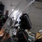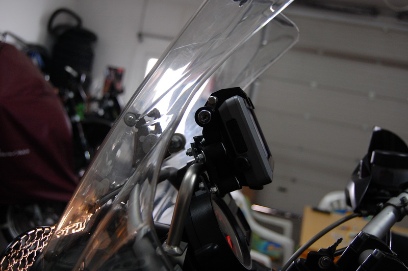 Nachdem mein Halter mit der richtigen Schluesselnummer von TT geliefert wurde, kann ich nun also alles fertig verkabeln und auch gleich damit fahren. Heute standen ja Reifenwechsel und TUEV an, so dass das zumo660 auch mal durch die Stadt lotsen konnte. Es mag an meiner langjaehrigen innigen Beziehung zum 278 liegen, ich werde auf dem Mopped mit dem zumo nicht recht warm. Die „Art“ der Anzeige, keinen Massstab, wenige bis keine Strassennamen, egal wie weit man reinzoomt, Track wird ausgeblendet wenn man die Karte verschiebt. Lauter Kleinigkeiten, die das GPSMap 278 um einiges besser kann. Aber es ist vermutlich Jammern auf hohem Niveau. Erstmal fahren und dann sehen wir weiter. Der Halter ist nun so platziert, dass ich die Instrumente gut sehen kann, nur beim Drehzahlmesser fehlen die Zahlen 1-3 ein wenig. Damit kann ich gut leben. Wichtig ist nur, dass der Schluessel reinpasst ohne etwas zu zerkratzen, das zumo auch im Stehen noch abzulesen ist und die Verkabelung nirgends scheuert. All das ist gegeben, also will ich zufrieden sein. Zufrieden bin ich vor allem, weil ich heute endlich wieder Kradfahren konnte und ich gleich noch Schnitzel essen gehe. Achja, der Mudsling Spritzschutz hat sich heute schon bewaehrt. Kaum Sauerei am Federbein angekommen. So mag ich das.