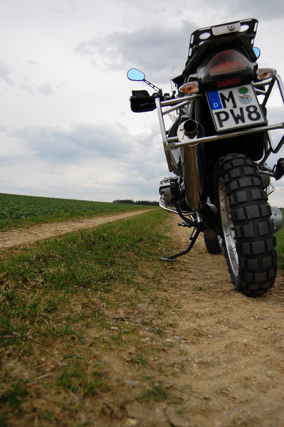 meine Haix Special Fighter sind ja nun a) in die Jahre gekommen ((eigentlich ins zweite Jahr)) und 2) nicht mehr ganz dicht. Da ich aber vom Service und der Beratung, dem angenehmen Ambiente und der Freundlichkeit von Haix schon immer begeistert war ((besser bin)), habe ich mich heute entschlossen eine kleinen Ausflug nach Mainburg zu machen. Im Internet schon mal nachgesehen, was aktuell so an Stiefeln angeboten wird, neben dem Special Fighter, der mir sehr sehr gut gefallen hat. Fire Flash Gamma hatte ich schon, Special Fighter auch, Airpower P9 Desert liegen hier noch rum ((habe ich Doesel zu gross gekauft und nie umgetauscht)). Aber Airpower X1 sieht spannend aus. Alle Merkmale des Special und ein bisschen kuerzerer Schaft. Dafuer ein dickerer gummierter Teil ueber die Stahlkappe, sehr praktisch wenn man schraubt ((knie Dich hin und schau wie die Stiefelspitzen auf dem Boden schrammen)). Hinfahren ((unterwegs Kaffee getrunken und Quarktasche gegessen)), probieren, einen X1 als 2. Wahl finden, 139.- EYPO bezahlen, heimfahren ueber die Doerfer und durch ein kleines Waeldchen, zufrieden sein. Beinahe schade, dass es nicht regnete, haetten die Stiefel gleich mal zeigen koennen wie dicht sie sind.