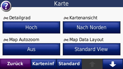 Garmin hat es getan, ein Firmwareupdate ist im Betastadium und hoffentlich demselben bald entwachsen, so dass man offiziell in den Genuss ((und das ist es wirklich)) der Neuerungen kommt. Aber der Reihe nach, ich habe von Touratech Muenchen erfahren, dass die 3.6x Version ((also die neue Firmware)) fuer das zumo 660 von Garmin dort bereits auf einem Testgeraet im Einsatz ist. Da lasse ich mich ja nicht zweimal bitten und habe die Gunst der Stunde fuer einen kleinen aber feinen Test genutzt ((unter dem wachsamen Auge des Gralshueters)). Nach dem Einschalten des 660ers ist erstmal alles beim Alten. Ueber die Funktion -> Einstellungen -> Karte kann man nun auswaehlen, ob man „more Data“ oder „more Map“ viewen sehen will.