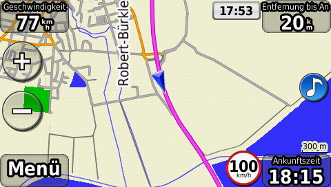 Manch eine Uebersetzung fehlt noch, ist aber absolut nebensaechlich. Wichtige Dinge koennten von mir aus in Suaheli sein, ich find das dann schon. Neben den Modi um die Art der Fortbewegung zu definieren, hat das Geschwindigkeitsfeld ((zumindest in der Beta)) eine tolle Neuerung bekommen. Ich bin ja seit jeher kein Freund von Radarwarnern oder „Blitzer POI“ und aehnlichem Zeug. Wer zu schnell faehrt, der muss eben damit leben wenn es blitzt. Aber wenn das Navigationsgeraet es drauf hat, neben der aktuellen Geschwindigkeit und der erlaubten Geschwindigkeit auf der gerade befahrenen Strasse beim Erreichen ((respektive Ueberschreiten)) der erlaubten Hoechstgeschwindigkeit, ganz schlicht die Geschwindigkeitsanzeige in rot statt weiss darzustellen, ist fuer mich Weihnachten ((und das kurz vor Ostern)).