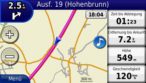 Die „more Map“ Variante entpricht am ehesten dem, was ich vom GPSMap278 her gewohnt bin und beim zumo660 schmerzlich vermisse. Transparente Datenfelder, die man frei definieren kann. Also Geschwindigkeit, Entfernung zum Ziel, Hoehe, Durchschnittsgeschwindigkeit, Sonnenauf- und Untergang, und etliches mehr, wer ein zumo oder 278 hat, kennt die Felder. Nun kann man auch beim 660er 3 der 4 Felder frei belegen, jeweils fuer „Routing“ und „non-Routing“ ((oder wie auch immer man ein Navi nennt, das nicht routet sondern als Karte mitlaeuft)). Was leider immer noch nicht ((aber wir sind ja auch in der Betaphase)) geht, ist die Anzeige von Strassennamen in variabler Schriftgroesse. Wenn eine Strasse angezeigt wird ((mir ist nicht ganz klar nach welchem System der zumo 660 die mal anzeigt und mal nicht)) ist die Schrift enorm gross. Aber das ist nun Jammern auf hohem Niveau.