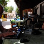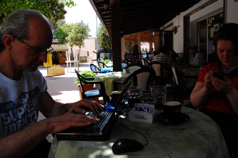 den sonnigen Donnerstag nutzten wir fuer einen Ausflug. Ich wollte unbedingt meine Mails checken und Wolfi dringend seine Bekannte besuchen. Beides kann man in La Caletta, respektive Santa Lucia, erledigen. Wir fuhren also die kurvenreichste Strasse der Insel ((SS125)) von Bari nach La Caletta und tranken nach 3 h Fahrt ((einfach 150 km)) reichlich Cappucini, Cola und Tee. Durch die Verbindung mit der Aussenwelt entbrennt der Wunsch nach einer dauerhaften Internetverbindung im Urlaub und wir zogen in den Mobilfunkshop von Siniscola. Laut Netzabdeckungskarte ist Bari Sardo voll versorgt und so schlage ich bei einem 69.- EUR Angebot zu. UMTS Stick, SIM Karte und 100 h Internet fuer 30 Tage, Folgemonate zwischen 10.- und 19.- EUR ((die ich aber erst mal nicht brauchen werde)) sind in dem Paket.