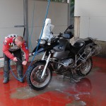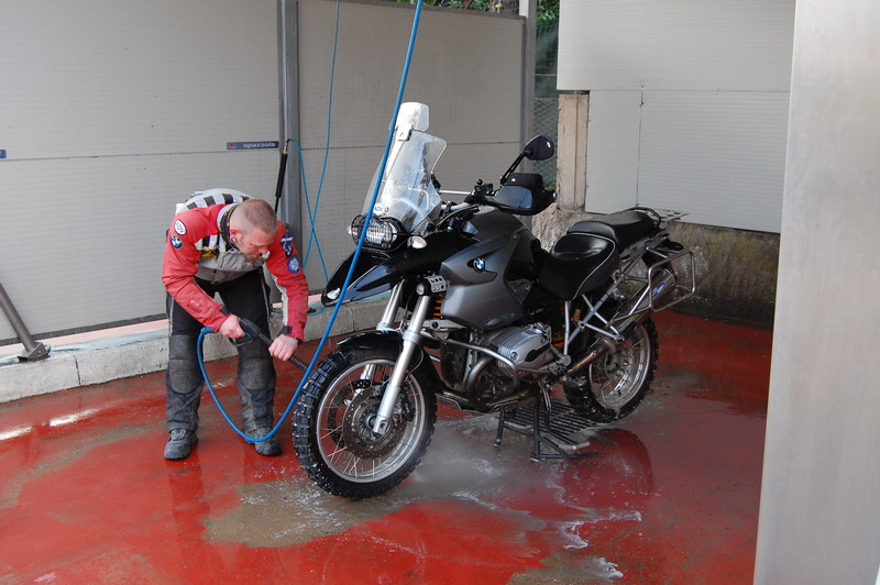 Leider hat Mamma Mia ((in Santa Lucia)) noch geschlossen und so werden wir nicht berwirtet wie letztes Jahr. Wir versuchen das bei der Fahrt zur Faehre einfach nochmal. Die Rueckfahrt wieder ueber die SS125 in der untgergehenden Sonne ist eine Pracht. So viele und schnelle Kurven findet man kein zweites Mal. Kurz vor dem Ziel ((also im Haeuschen)) sind wir wieder an der Tankstelle, an der wir morgens die Spritblase gefuellt haben und ich nutze die Gelegenheit in eine Waschbox zu verschwinden. Man erklaert mich zwar fuer komplett Banane aber ich fummel eben lieber an einer sauberen Moppete als an einer, der man ansieht, dass ich sie gerade voll durch den Schlamm gezogen habe ((im Gennargentu)). Ich muss Radschrauben, Steckachse, Bremsbelaege und Co checken und die Belaege sehe ich vor lauter Schlamm schon nicht mehr. Kaum im Haus angekommen setzen die Anderen die Nudeln auf und es gibt Pasta und Salat. Als zweiten Gang dann Schinken, Salami, Kaese und Brot.