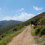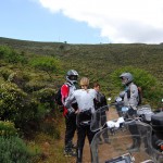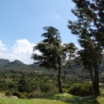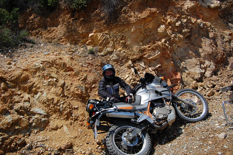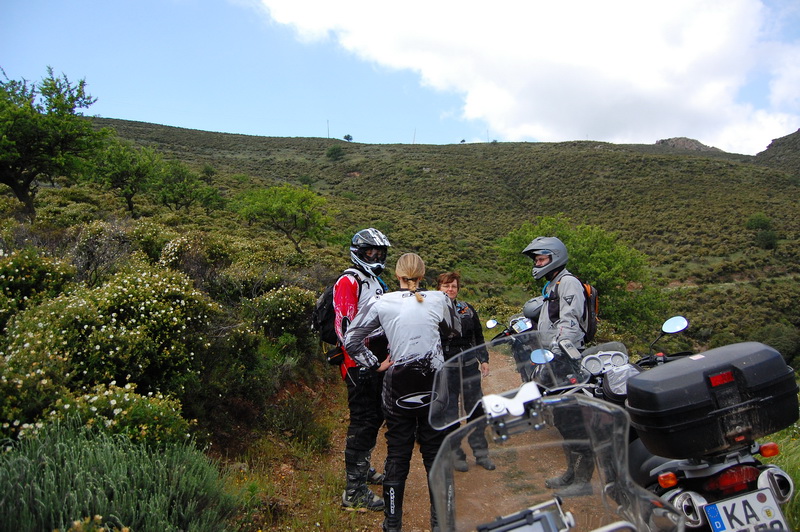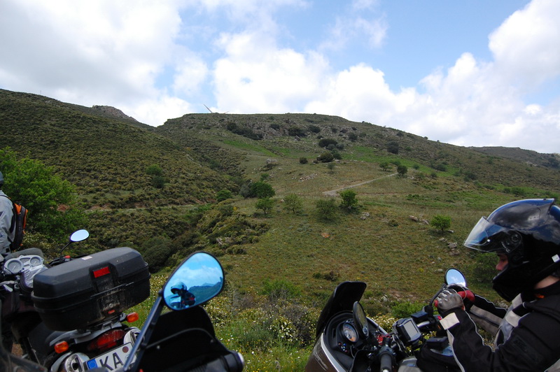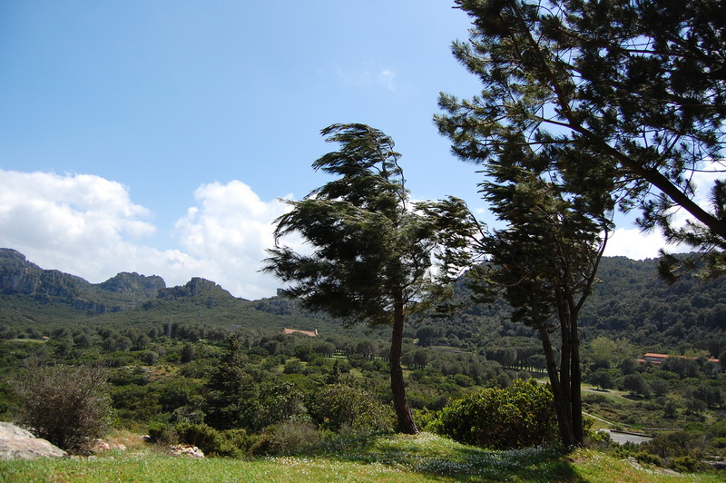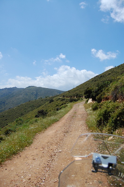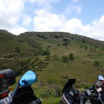 Tagesziel Sperrgebiet. Dort waren wir ja am 4. Tag des Sardinienurlaubes schon einmal. Und weil es so famos war, startete die heutige Tour auch wieder durch das Gebiet der Windmaschinen. Obwohl nur knapp die Haelfte der Ventilatoren liefen, hatten wir auf den Plateau gefuehlte Orkanstaerken. Der Aufstieg an sich war kein grosses Problem ((bis auf die neuen Kratzer an der KLE)) aber in den folgenden Stunden warf uns der Wind beinahe in die Botanik. Wenn weit und breit, ausser ein paar traurigen Straeuchern und ein paar Rindern, nichts steht, was den Wind abhalten koennte, kann das schon anstrengend sein.