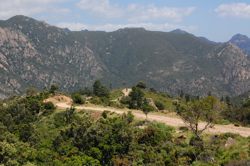 die Feldwegetour orientiert sich grob an Strassen, die auf der Karte gerade noch so erkennbar sind und die laut topographischer Karte wenigstens in der Theorie eine Verbindung zueinander haben koennten. Einige haben eine, Andere nicht, macht nichts. Ueber Berge, durch Flusstaeler, Schotter, Kies und Sand. Alles dabei.