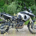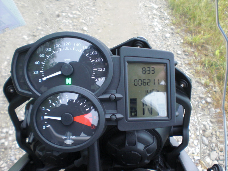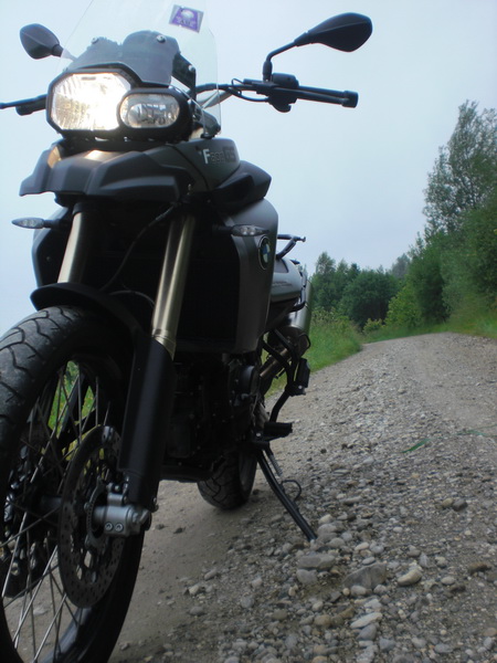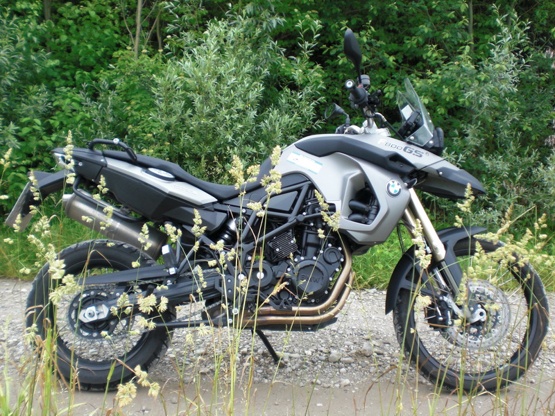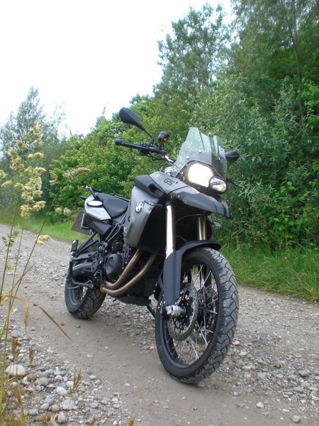 F800GS, 85 PS, 83 Nm, 205 kg ((fahrfertig)), magnesium matt, 90/90/21 vorne, 150/17/17 hinten ((leider nur so ein Brueckstein Gummi)) und Spass pur. Ich bin von den Socken, so wenig Motorrad und so viel Bums. Die Strecke ins Buero ueber den Frankfurter Ring, Foehringer Ring, M3 und St-irgendwas vergeht wie im Flug und macht trotz Verkehr richtig Laune. Auf dem Weg nach Hause ueber die A99 wurde das Mopped dann mal kurz auf 180 km/h getrieben und ich muss sagen, sehr angenehm. Insgesamt, trotz ((fast))gleichem Motor, taugt mir die GS wesentlich besser als die F800R.Einzig die Schaltung ist ein wenig hakelig. Nur ungewohnt oder Serie? Kurze Recherche ergibt, dass es hier wohl eine gewisse Streuung gibt. Also doch nicht Serie ((jedenfalls nicht gewollt)).