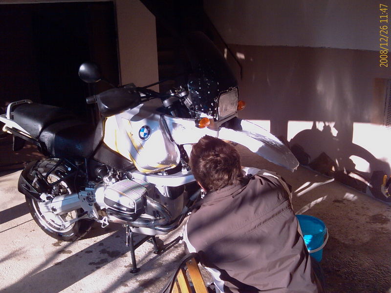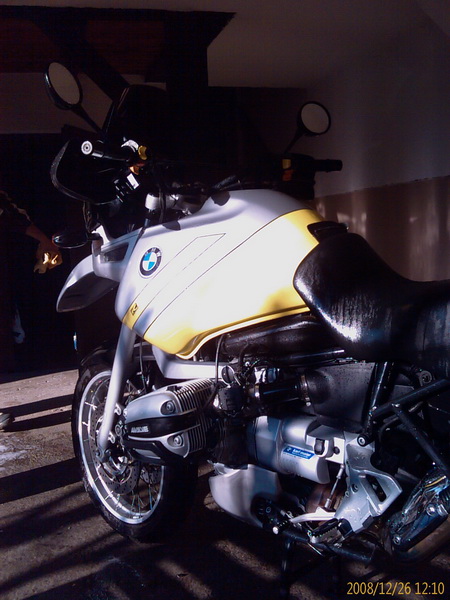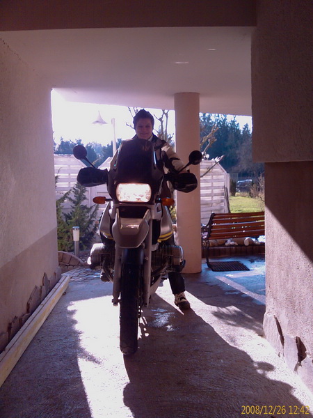 am 25.12.2008 um 10:00h ging es los, von Muenchen aus 380 km durch Nieselregen und ueber gepoekelte Autobahn. Gegen Ende noch ein kleines Stueck ueber Land in die Walachei und die 1100 GS uebergeben ((dafuer wurde ich die folgenden 12h bekocht und verwoehnt)). Neues Mopped, grosse Plaene, die abendliche Unterhaltung drehte sich zu 90% um Ausruestungsgegenstaende rund ums Campen und um Anbauteile fuer GS und Co. Irgendwie scheint so eine GS einen Automatismus zu aktivieren, der einem jedes Gimmick unbedingt notwendig erscheinen laesst. So wurde ich wenigstens mal wieder bestaetigt, dass ich beileibe nicht der Einzige mit so einem Gadget-Tick bin und auch dass eine Zeltunterlage die naechste Anschaffung sein wird. Am naechsten Tag hat die glueckliche neue Kuhtreiberin dann das Mopped auch brav grundgereinigt ((war sie vor der Fahrt zwar eh schon)) und vom Salz befreit ((richtig so)). Gute Fahrt.