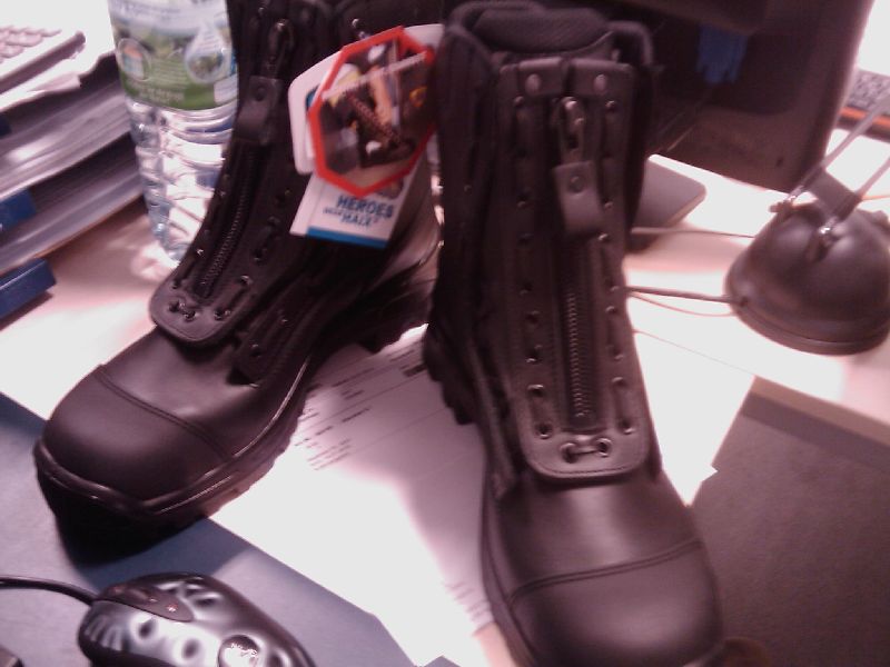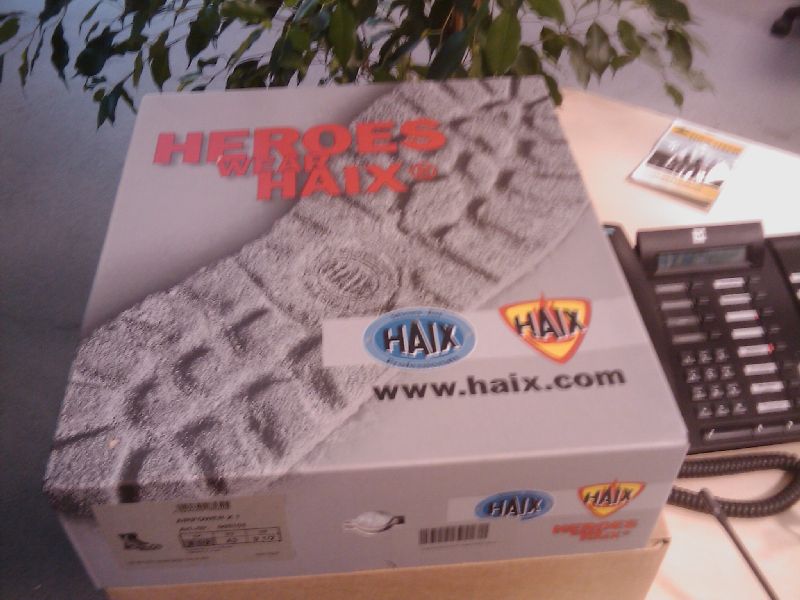 am 30.03.2010 habe ich mir wieder mal ein Paar HAIX Stiefel gekauft. Aufgrund der ausgesprochen guten Erfahrung mit der Firma aus Mainburg werde ich wohl auch die naechsten Paare dort kaufen. Leider war der Stiefel ((rechts)) undicht, so dass er wieder eingeschickt wurde. Nach nun etwa knapp einer Woche kam heute die Lieferung von HAIX zurueck. 1 Paar nagelneue HAIX Airpower X1. Um die Sache zu beschleunigen, habe ich in meinem Reklamationsschreiben gebeten, ggf. eine 1. Wahl gegen Aufpreis zu senden und falls moeglich in einer halben Nummer kleiner, da mir die Ende Maerz gekauften doch einen Hauch zu gross waren. So halte ich nun ein Paar 8.5er statt der eingesendeten 9er in der Hand und das in 1. Wahl fuer ((wie bei der letztem Umtausch auch beim Upgrade auf 1. Wahl)) den moderaten Aufpreis von 40.- EUR ((netto)). Das mit dem Upgrade auf 1. Wahl beschleunigt den Austausch ungemein, denn es sind nicht immer 2. Wahl Stiefel in allen Groessen auf Lager, wer schon mal im Lagerverkauf war, der kennt das. Also wahlweise warten ((3 – 5 Wochen im schlimmsten Fall)) oder eben ein paar Euro locker machen. Nachdem die Schuhe von HAIX hochwertigste deutsche Wertarbeit sind und noch dazu sehr guenstig ((im Vergleich zu Daytona)), muss ich da nicht ganz schlimm weinen.