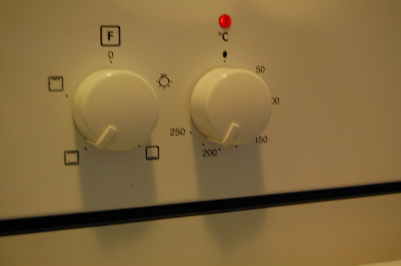 - einen Backofen, vorheizen auf 180°C, Umluft oder Ober- Unterhitze ((hier keine Umluft verfuegbar))