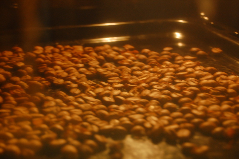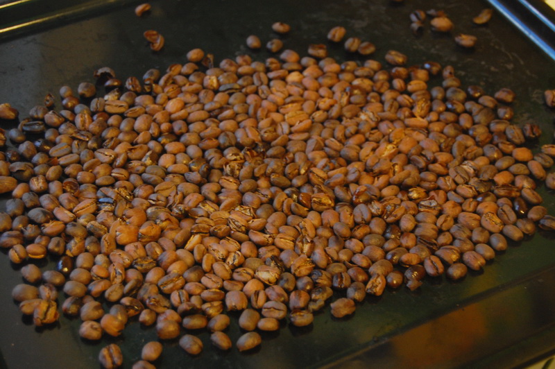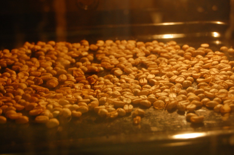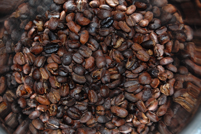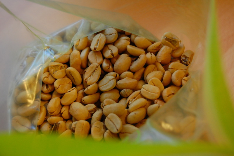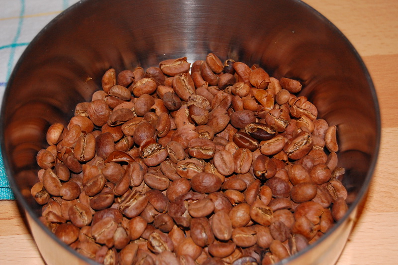 - ein paar Kaffeebohnen, peruanische Hochlandernte, roh ((sonst waer es witzlos))
