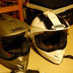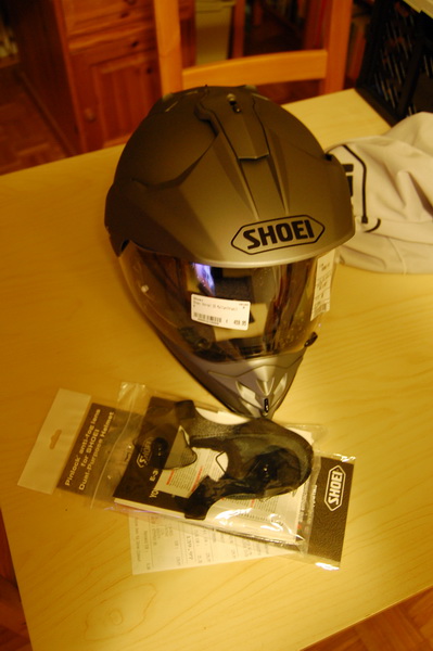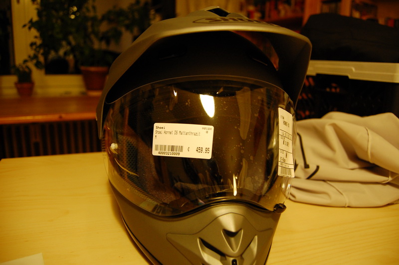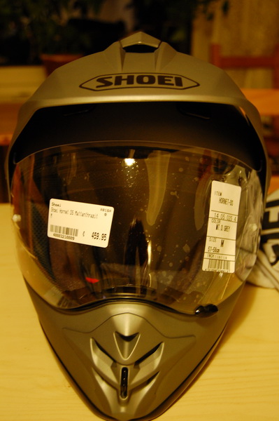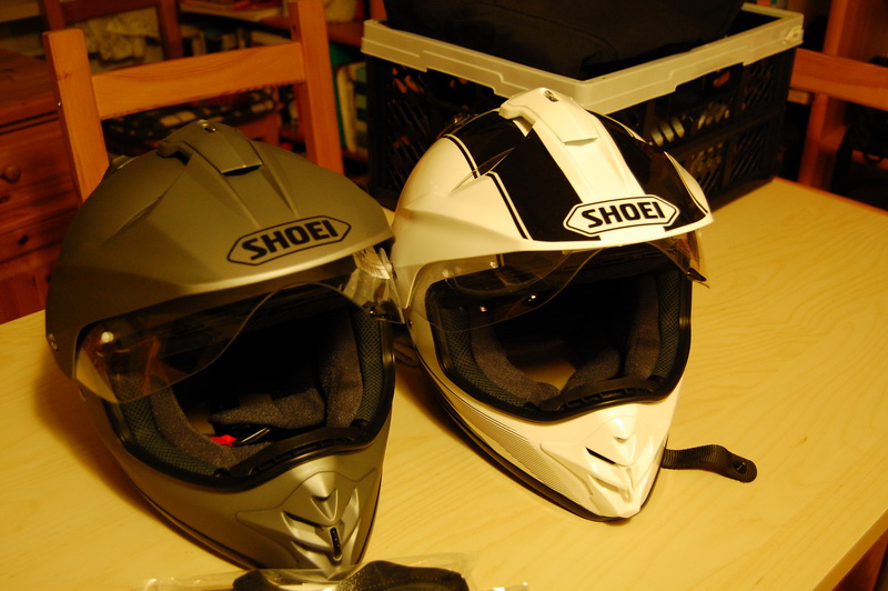 manchmal muss man einfach dem Glueck eine Chance geben. Ich will gar nicht weiter ausfuehren, wann und warum ich noch einen Hornet DS bestellte, diesen eigentlich schon abgeschrieben hatte aber dennoch erhielt. Nun habe ich also noch einen Helm. Dieser hoert auf den Namen Shoei Hornet DS mattanthrazit Gr. M und sitzt fast so gut wie der Sonora in S. Der letzgenannte Helm sitzt enorm straff. Nicht zu eng aber auch nicht 100% optimal. Vermutlich sind es meine Pausbacken, die in dem Helm dazu fuehren, dass ich ein wenig „gequetscht“ aussehe. Nun habe ich also einen S und einen M. Der S kommt mit 39er Wangenpolster, der M mit 35ern. Flugs die Wangenpolster getauscht und siehe da, der S sitzt nun wie angegossen, der Druck ist weg, die Backen entlastet ((ich koennte, wenn ich denn wollte, Kaugummi kauen ohne auf die Wangen zu beissen)) und der M mit den dickeren Polstern sitzt auch angenehm. Ich habe einen M/S Kopf -.- wie es scheint. Ich sollte langsam anfangen eine groessere Helmablage zu basteln. Ich tendiere aber dazu den Sonora zu fahren, gefaellt mir einfach besser.