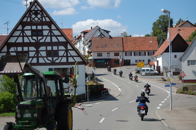 meine Herren, wie schnell die Zeit vergeht. Eben noch war SA1 2008, dann gleich SA1 2009 und ehe ich mich versehe, schon das SA1 2010. Anreise bei KM-Stand 85405. Nebst Muetzli reiste ich per Krad an, waehrend Marion und $Kind_2 per Dose und Gepaeck nach Marbach fuhren. Wie jedes Jahr ausgerichtet, organisiert und bis ins Detail geplant von der Maschinenbaeuerin, fanden sich dieses Jahr gut 30 Leute ein um zu feiern, trinken, grillen und Spass haben. Neben der obligatorischen Freitagsgrillerei und dem ebenso jaehrlichen „kleine Runde durchs Donautal/Lautertal und zurueck“ gab es dieses Jahr den Jubeltag der Blonden zu begiessen. Neben reichlich Geschenken fuer Heikos Liebste gab es im Gegenzug Kaesespaetzle bis zum erbrechen abwinken. Bloed wenn man keinen Alkohol trinkt, ich hatte keine Chance den Kaeseball in meinem Magen aufzuloesen, lecker aber schwer. Viel gelacht und auch noch was gelernt dabei ((Die Schweizer haben ihr eigenes Belfast fuer Besserverdienende)) und endlich so viele Menschen wiedergesehen, die man aufgrund der Entfernung nur alle Jubeljahre ((oder auf der MF)) zu sehen bekommt. Ich bin nun ausserdem stolzer Besitzer einiger „Hello Kitty Tattoos“ ((leider nur zum aufkleben)) und eines „Hello Kitty Luftballons“ ((danke Birgit)). Am Sonntag nach dem Abbau des Zeltes ((die Organisation vergibt mit weiblicher Gelassenheit und unter Einsatz von Mitgefuehl solange Schlafplaetze, bis ich im Zelt pennen muss)) und reinigen des Hauses ging es dann wieder Heim. Ankunft bei KM-Stand 86074.