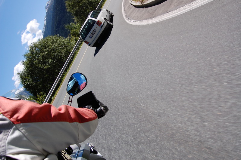 Nach einer Talfahrt vom Glockner, hinter einer Autoschlange ((Niederlaender und Hamburger)), die sich hinter einem Reisebus ((sollte man generell untersagen auf solchen Strecken)) stauen, bedarf es erstmal mehrerer Kilometer freier Landstrasse bis mein Hals unter 1 m Umfang hat. Reisebusse, Wohnmobile samt Anhaenger ((auf denen 2 Rollklos stehen)), Greise in absurd riesigen Limousinen… was man so auf einer der schoensten Strecken in den Alpen geboten bekommt, ist schon pervers.