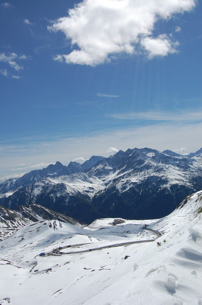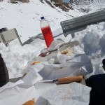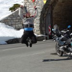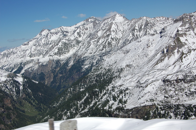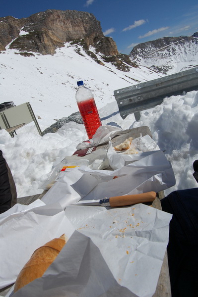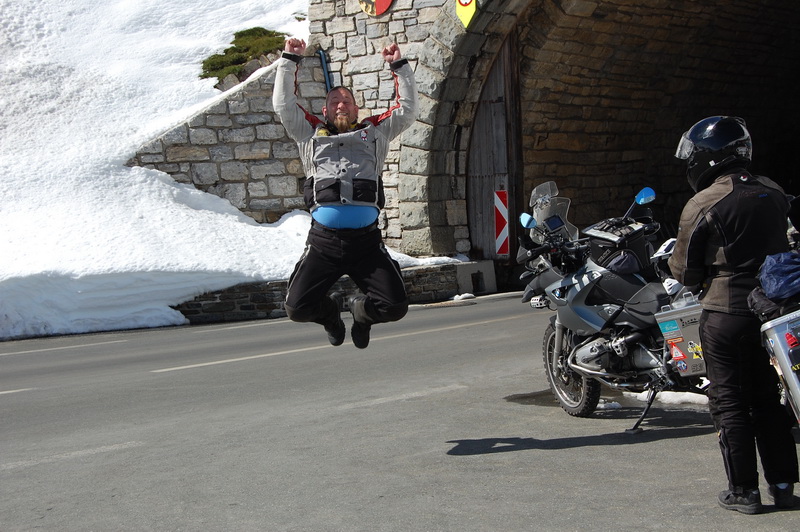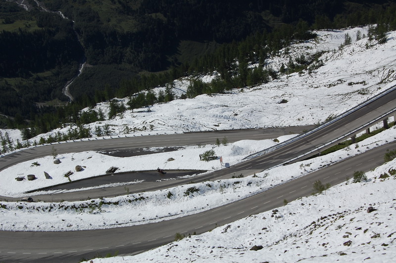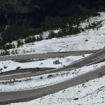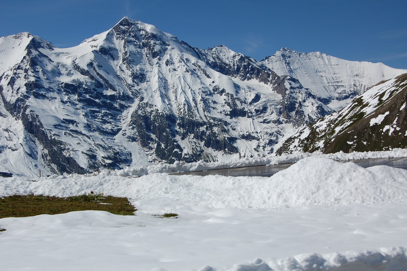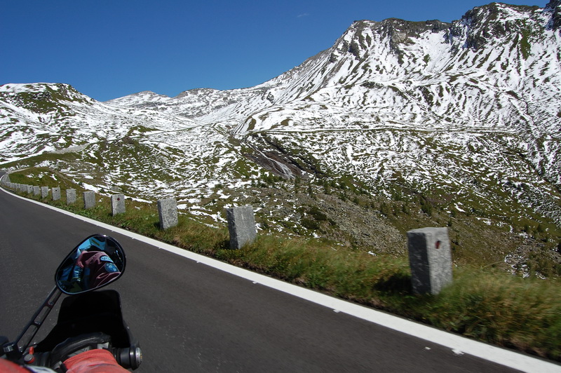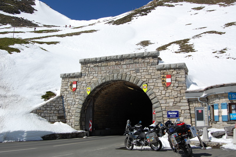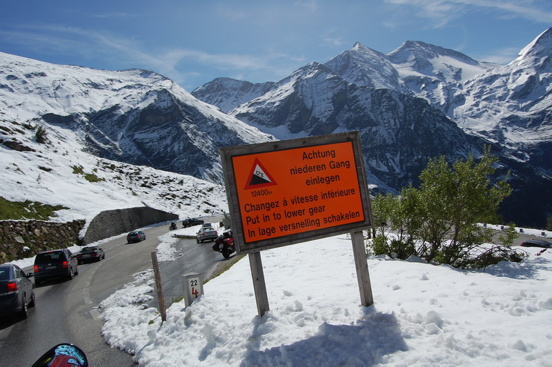 09:00h in Kranjska Gora. Wir sitzen rauchend und Kaffee/Tee trinkend vor dem Appartment von Sanja ((Top Empfehlung, wenn jemand mal in die Gegend faehrt)) und planen die Route nach Hause. Es koennte ((laut Wetterdienst)) in den naechsten Tagen regnen und nach der mehrstuendigen Fahrt im Unwetter vor ein paar Tagen, wollen wir kein Risiko eingehen. Also saemtliches Equipment verpackt, das Navi mit der Route gefuettert und uns von Sanja verabschiedet. Es geht ueber den Wurzenpass ins Gailtal, weiter ueber Weissbriach ins Drautal ((der geneigte und lotrechte Leser erkennt, Aha! Wie bei der Anreise)) und dann Richtung Heiligenblut ((nochmal Aha!)). War es bei der Hinfahrt ueber den Grossglockner noch „frisch“ bis „zapfig“, ist es nun „scheissekalt“ bis „haette ich nur die Fleecejacke untergezogen“. Die Aussicht ist jedoch noch spektakulaerer. Es ist gerade Anfang September aber die Schneefraesen stehen bereit und haben augenscheinlich schon jede Menge zu tun, denn neben der Strasse liegt bis 50 cm hoch der Neuschnee. Auf der Passhoehe am Hochtor ((2.504 m)) wurde reichlich Jause ((Brotzeit)) gemacht und so gestaerkt in maessiger Geschwindigkeit ueber die Hochalpenstrasse gefahren.