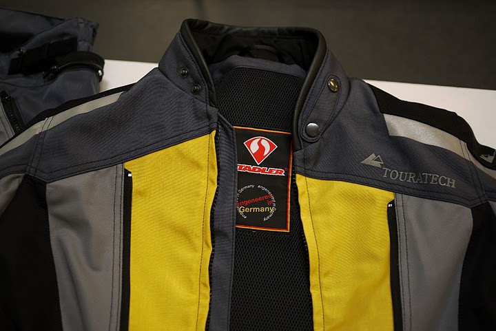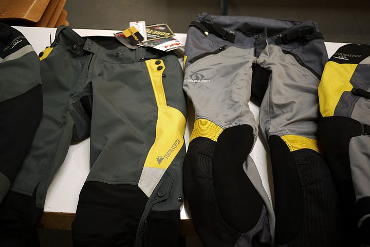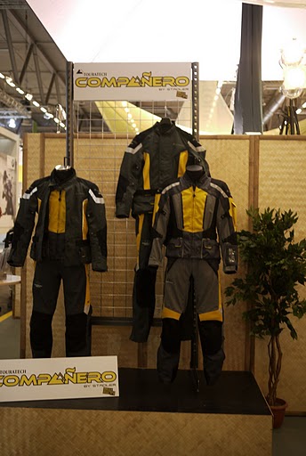puenktlich zur Intermot 2010 schickten sich nicht nur Dutzende Hersteller an, ihre neuen Krapfen Modelle vorzustellen und hochglanzpoliert der breiten Masse zu praesentieren, teilweise mit dekorativem Weibsvolk Beiwerk geschmueckt. Davon gibt es im Weltweitwebs aber reichlich und ausfuehrlich zu lesen, sehr amuesant auch beim Clemens auf der Heimseite. Was ich vermisste, war ein wenig Information zu Touratechs neuester Idee, mit der Firma Stadler zusammen eine Kollektion names „Companero“ ((man denke sich auf dem N so eine Tilde)) auf den Markt zu werfen. Feinste Stadlerqualitaet ((das ist nicht ironisch gemeint)), 3 Lagen System, Belueftung fuer echte Sommertauglichkeit, wasserdicht und luftundurchlaessig ((nach Innen)), also eine bessere Streetguard, wenn man den Aussagen trauen kann. Ein paar Bilder habe ich mal von Tomas Kocanda ((Touratech CZ)) entliehen, der so freundlich war beim Distributorenmeeting vor der Intermot ein paar Details zu fotografieren.