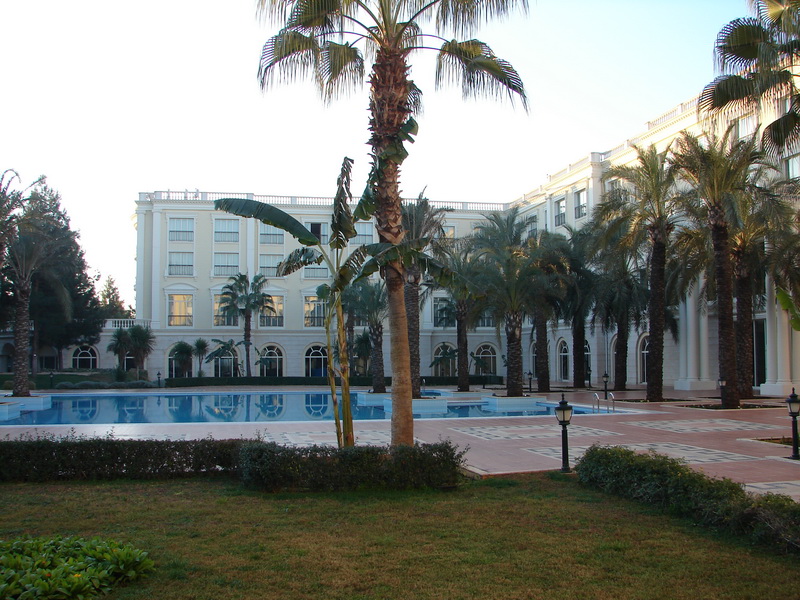 Boarding ist um 18:00h und schon um 18:30h bewegt sich der Flugapparat ((Boeing 757-200)) auf die Runway und hebt ab. Ueber Slowenien, Kroatien und Bulgarien geht es Richtung Tuerkei. Um 19:30h rollen die Sueftschuebbsen durch den Urlaubsflieger. Huhn mit Auberginen und Tomate, dazu einen Nudelsalat. Da Marion ((http://www.maschinenbaeuerin.de)) diesen nicht mag, esse ich eben zwei. Dazu werden Kaffee, Tee und Cola gereicht. Captain Oemer und seine Crew liefern uns um 21:15h ((22:15h Ortszeit)) in Antalya ab. Zum Glueck klatschten nur etwa 10 Leute in dem vollbesetzten Flieger ((nicht ganz voll, ich hatte 2 Plaetze und die fuellte ich gut aus)). Auf einem Flug in die Tuerkei in der MA ueber die Ligurische Grenzkammstrasse zu lesen ist schon ein wenig ulkig im Nachhinein betrachtet. Bis wir aus dem Flughafengebaeude heraus sind, ist es 22:45h. Auf meiner Uhr ist es noch 21:45h, Uhr umstellen will ich aber nicht. Der freundliche Mensch von Rudhi Tours gibt Auskunft, BigXtra ist an Stand 20. Also hin und gemeldet, weiter zu Bus 176 und bei 10°C latschen wir rauchend zum Tourbus. Nach 2 Moods und etwa 20 Minuten geht es los in ein 5 min entferntes „Airport Hotel“. Meine Erwartung wird mehr als uebertroffen, ein 5 Sterne Luxushotel mit Hotelboys und Saeulen am verglasten Eingangsbereich. Morgen ab 06:30h gibt es Fruehstueck, Abfahrt fuer die grosse Rundreise dann um 07:45h. Mal sehen wieviele daran gedacht haben, das wir hier eine Stunde voraus sind im Morgenland. Schliesslich sind wir geographisch gesehen in Asien. Und morgen wenn es hell wird, kann ich endlich ein paar Bilder machen. Nun noch Eurosport schauen, Dakar Rallye und dann ab in die waagerechte ((Kingsizebed waere untertrieben)).