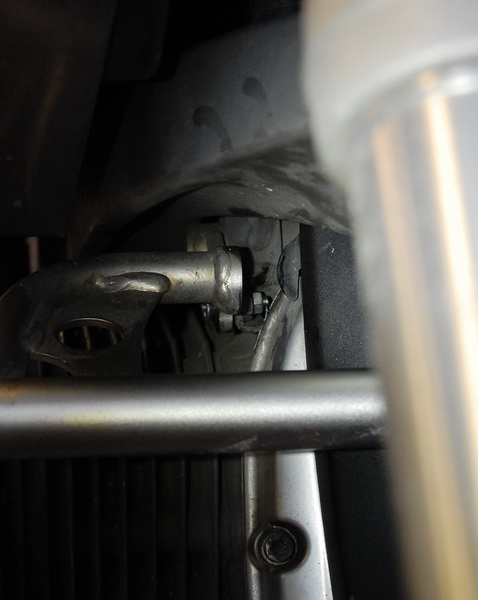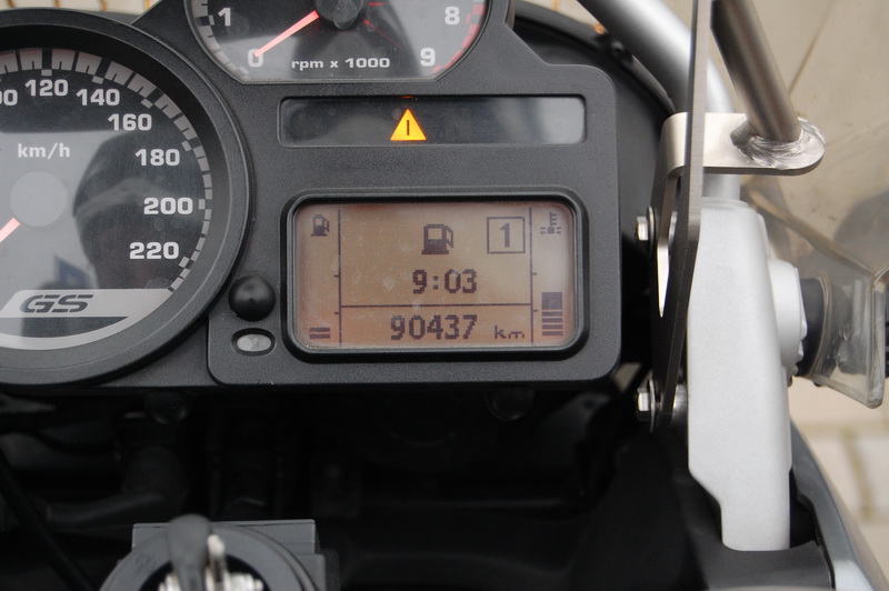 Zwei Kleinigkeiten kamen noch hinzu, auf deren Berechnung ich wirklich gespannt bin. Einmal sprach ich einen „Tropfen“ am Bremsfluessigkeitsbehaelter vorne an, der nicht Wasser sein konnte und der vor wenige Tagen „mal auftrat“. Kurzentschlossen wurde der Behaelter und dessen Verschluss und Dichtung geprueft, der Behaelter von unten ((2 kleine Torx)) nochmals ordentlich angezogen, ich solle es im Auge behalten. Das Zweite ist eine Mutter mit gezogenem Gewinde. Der TT-Sturzbuegel wird unter anderem an einer Schraube befestigt, welche direkt am Motorgehaeuse der GS verschweisst ist. Vermutlich habe ich mal eine Schraube mit Feingewinde reingemurkst oder eine der Werkstaetten hat Linke und Rechte Befestigungsschraube verwechselt. Jedenfalls dreht die Schraube durch, nicht aber der Mechaniker. Kurzerhand wurde eine Schraube verwendet, die lang genug ist um hinter der eigentlichen Mutter eine Weitere zu setzen. Unglaublicher Fingerbrechkram. Haelt und gut. So klappert es wenigstens nicht, gehalten wird von der ja eh nichts.
