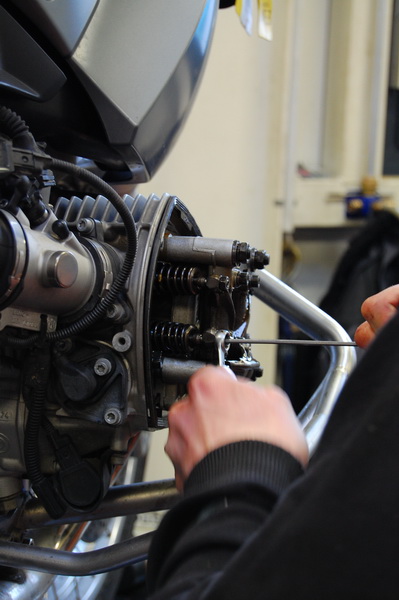 ganz schoen lange her, seit der letzten Inspektion. Ich bin ein wenig erstaunt, dass ich letztes Jahr doch so wenig Kilometer fuhr. Der Wecker riss mich heute wieder um 07:00h aus dem Schlaf und die Stunde zwischen 08:00h und 9:00h verbrachte ich fahrend in Richtung Schrobenhausen. Da BMW Motorrad Pielmeier bis Mitte Maerz noch keine zugelassenen Kraeder hat, um den geneigten Werkstattkunden mobil zu halten ((da wurde ich aber telefonisch vorgewarnt)), turnte ich sagenhafte 3h 10 min ((ungelogen)) in der Werkstatt rum und beaeugte jeden Handgriff mit Argusaugen. Nicht dass ich dem Mechaniker nicht vertrauen wuerde aber ich bin eben unglaublich neugierig. Mit einer unglaublichen Akribie wurde geschraubt, befuellt, gemessen und geschrieben ((Inspektionsprotokoll)). Neben Oelwechsel ((mitgebracht, da ich nur Motul 20W50 mineralisch verwenden will)), Ventilspiel einstellen, Motorsynchronisation gab es noch diverse Testlaeufe fuer Bremssystem und saemtliche Steuergeraete per GT1 ((GroupTester One von BMW)). Der GT1 bemerkte dann auch ((also noch vor mir)), dass der linke Heizgriff wieder die Graetsche gemacht hat. Also nochmal aufmachen und ggf. flicken.