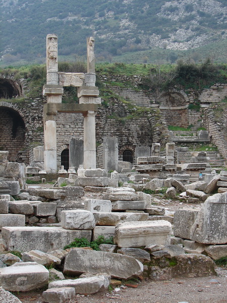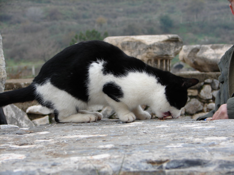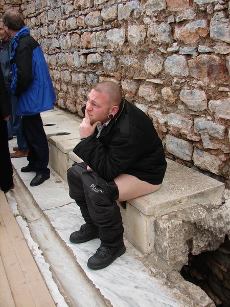 Knapp 350.000 Menschen lebten damals in Ephesos und viele, teils riesige Bauwerke sind sehr gut zu erkennen. Sofort sind wir umringt von jungen Katzen, in der Stadt, respektive den Resten der Stadt, leben an die 150 Katzen und turnen ueber die Ruinen neben den Touristengruppe her um gestreichelt zu werden und etwas zu essen zu erhaschen. Unsere Gruppe konnte mit Weissbrot und Knoppers dienen ((morgens halb 10 in Ephesos)). Im Theater, ein riesiges Bauwerk, singt uns die Reiseleitung die „Ode an die Freude“ von Beethoven feat. Schiller. Akkustik prima, gesanglich ein „war bemueht“. Die Bilder der Stadt sprechen fuer sich, lange Worte werde ich nicht suchen, einzig sei zu erwaehnen das Tausend Jahre alte Toiletten sehr bequem sind.