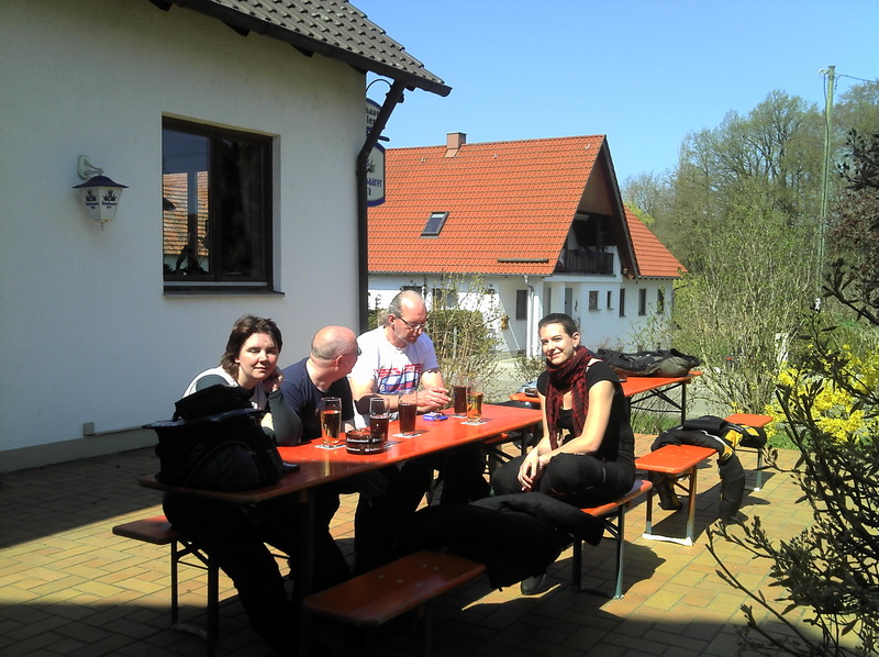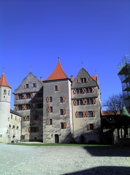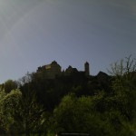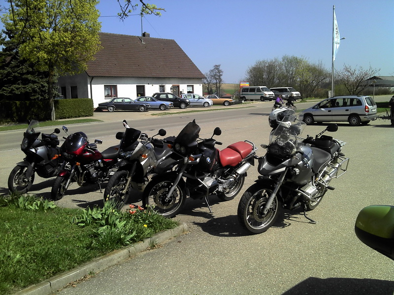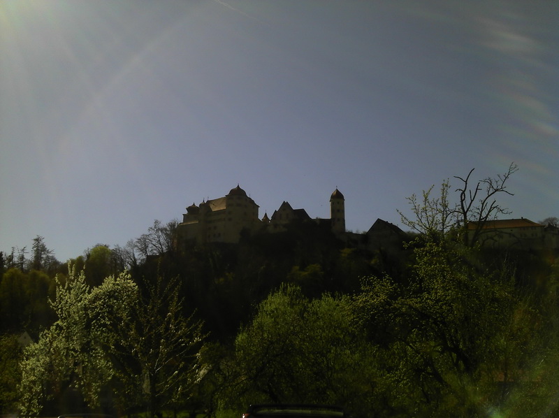 Junge, bevor Du die Welt erkundest, lerne Deine Heimat kennen. Ja, mach ich ja ((ernsthaft, aber eben Stueck fuer Stueck)). Diesmal also die Harburg im Schwaebischen. Nicht mal 300 km hin und zurueck aber den ganzen Tag gebraucht. Lag vermutlich auch daran, dass die Abfahrt um 1000h, erst um 1300h begann ((erst musste ein Mopped noch zum TUEV)) und die „kurze Rast“ ein ausgiebiges Mahl ((lecker und guenstig)) wurde. Dass es an dem Tag ordentlich warm wurde, merkte sogar das Obsttelephon, das sich nicht mehr bedienen lies, erstmal abkuehlen stand im Display.