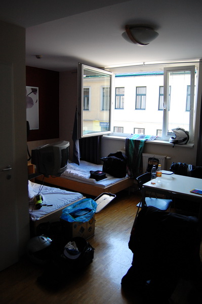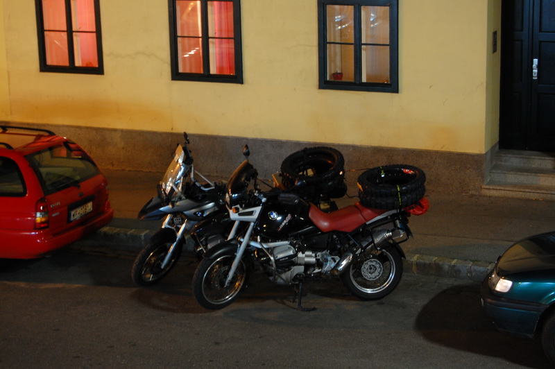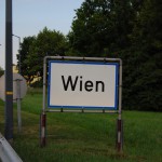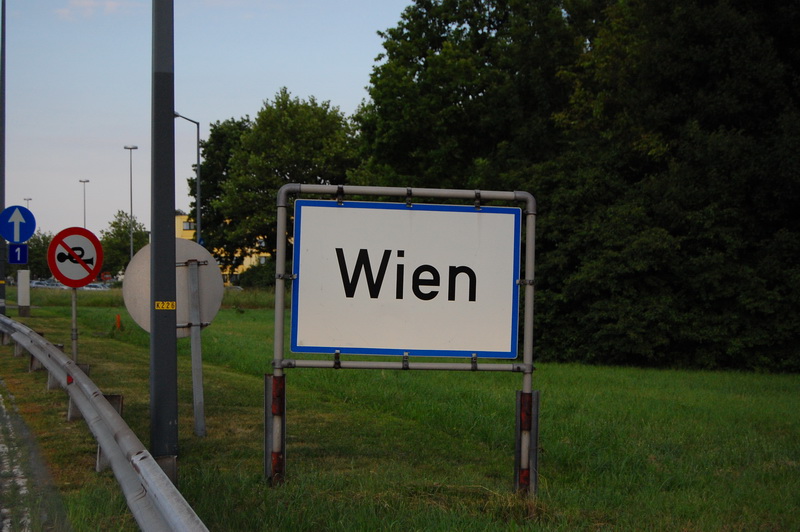 wir versuchen auf der Landstrasse bis Wien zu fahren, muessen aber 100 km vor Wien einsehen, dass es sich ewig zieht und ausserdem hoechst unspektakulaer ist, wenn man an jeder Milchkanne vorbeikommt. Also Mautpickerl gekauft ((4.50 EUR beim OEAMTC)) und rein in die Metropole. Wir haben versucht so anstaendig wie moeglich zu fahren, die Blitzer von Hinten sind mir aber trotzdem nicht geheuer.