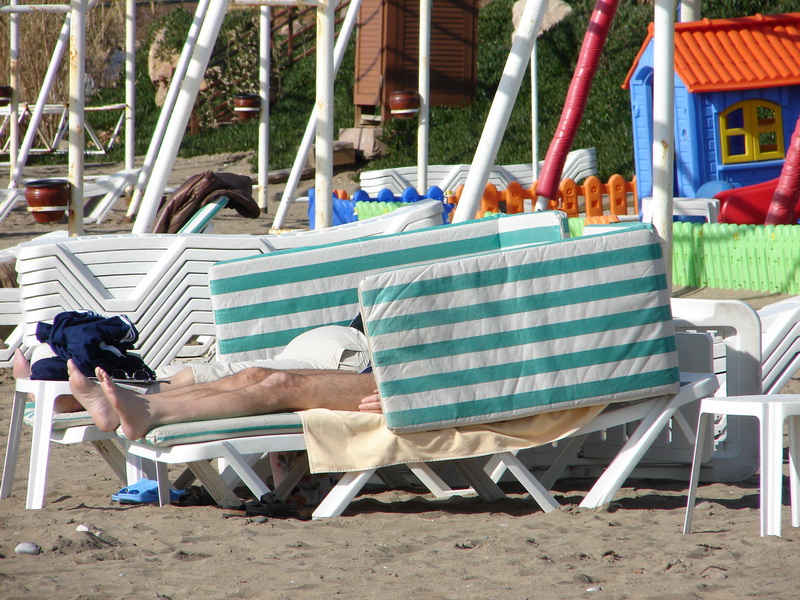 Wellnesstag. Sie erhalten eine 20 minuetige Rueckenmassage, Gesichtsbehandlung und ein Willkommensgetraenk im Wert von 60.- EUR verspricht der Gutschein in den Reiseunterlagen. So stehen wir also um 08:00h auf, treffen die Zimmernachbarn umm 08:45h frisch geduscht auf dem Flur und marschieren langsam Richtung Fruehstueck. Wie gewohnt reichlich und meine Pankakes und Omelettes werden in grossen Portionen auf den Teller geschaufelt. Da es erst um 14:30h in den Wellnesstempel los geht, beschliessen wir den Strand zu erkunden, der muesste laut Hotelplan gleich ums Eck sein. Vor dem Hotel ist ein kleiner Fussweg, auf dem wir nach 3 Minuten den Strand erreichen und direkt auf das Mittelmeer blicken, die Kulisse ist atemberaubend, vor uns das Meer, gefuehle 25°C vom wolkenlosen Himmel und links und rechts das Taurusgebirge. Katzen laufen spazieren, betteln um Futter und Streicheleinheiten und Dutzende Menschen liegen in der Sonne, ein paar wenige baden auch. Erst jetzt, knapp 24h vor Abflug wird einem richtig klar, dass wir in Kuerze wieder im eiskalten Muenchen sind, der Wetterbericht sagte -18° in der Nacht und Tagsueber nicht mehr als 5°C voraus. Im T-Shirt stehen wir mit Muscheln in der Hand am Sandstrand und spinnen uns Moeglichkeiten zurecht um noch Woche um Woche am Meer dranzuhaengen. Wird nichts nuetzen, der Heimflug steht bevor.