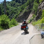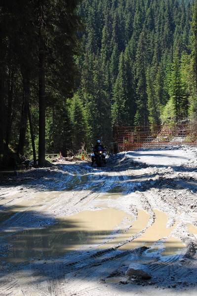 Von Cluj Napoca ((Klausenburg)) fuhren wir also Richtung Transalpina ((DN67c)), vorbei ((oder besser durch)) Alba Iulia nach Sebes. Der Anfang war dann auch unspektakulaer, schoen aber eben auf Asphalt. Das aendert sich jedoch fallweise. Mal eine Passage Erdreich, dann Schotter, dann wieder Asphalt aber mit Schlagloechern dass man einen Dacia Logan darin verstecken koennte. Nach 30 bis 40 km wird man dann von einem Matschfeld ueberrascht, welches gerade gemeistert, von einer weiteren Buckelpiste abgeloest wird.