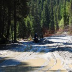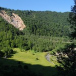Und nun haben wir Abenteuer Offroad. Schlimmer schoener als erwartet und immer wieder unter Felsueberhaengen durch, die wenig vertraueneserweckend aussehen und durch Waelder und ueber alte Bruecken, die einem Bauingineur ((also mein Wegbegleiter)) die Haare zu Berge stehen lassen.