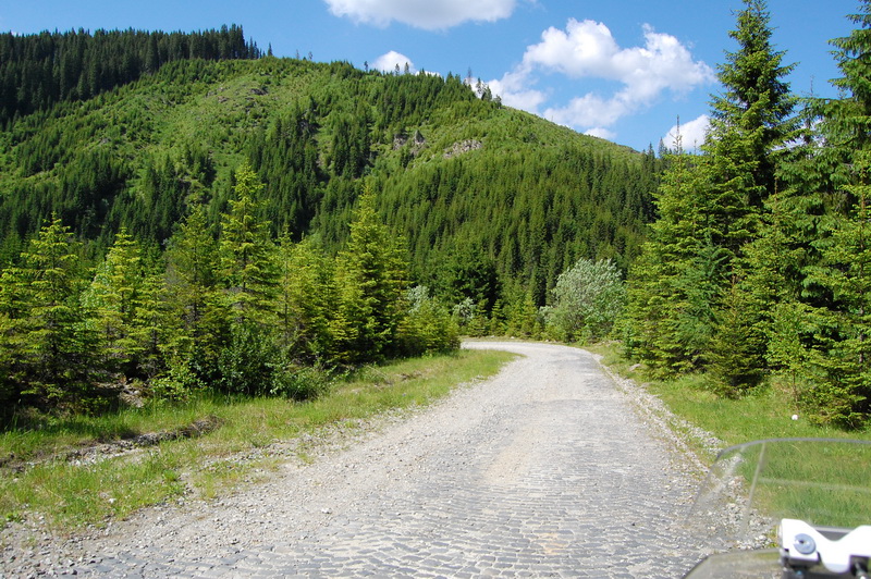 sagt der Rumaene ((also, diejenigen, die wir nach der Strasse befragten)). Durchgehend asphaltiert, perfekter Belag. Schade dachten wir, eigentlich suchen wir ja nach dem genauen Gegenteil. Muss nun keine Geroellhalde sein aber so ein bisschen „offroad fuer ambitionierte Laien“ waere toll.