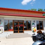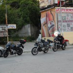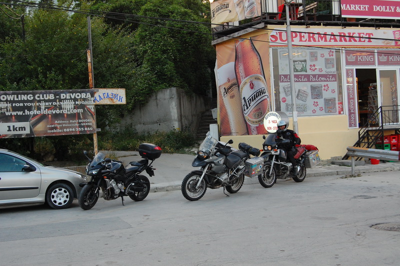In Dobric an der Tankstelle treffen wir auf Stanislav, der uns mit seiner Fazer zum Hotel fuehrt ((ok, das haette das Navi auch gekonnt aber das kennt nicht so interessante Sachen wie Erdrutsch und schoenster Blick aufs Meer, an denen unser Guide uns vorbeifuehrt)). Meine Frage, ob er weiss, wo man in Bulgarien so „Laenderkennzeichenaufkleber“ fuer den Koffer findet, quittiert er mit einem Umweg ueber seine Garage und schenkt uns 2 Stueck aus Kunststoff mit Chrominitialen „BG“.