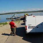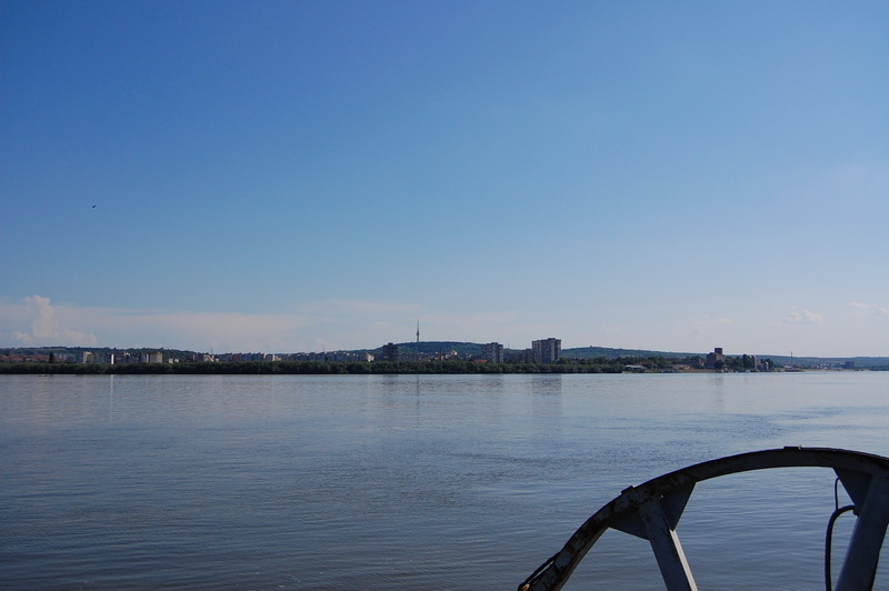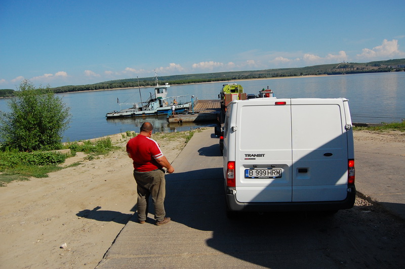 Mein Navi deutete eine passable Streckenfuehrung an und was mir nicht auffiel ((braucht man „daheim“ ja nie)), ist die Sache mit der Faehre. Wir haben 10 km vor der Grenze unsere letzten 10 RON ((rumaenische Lei)) mit 2 Pepsi verjubelt und stehen dann an der Donau, wo uns keine Bruecke sondern eine Faehre erwartet. Ein freundlicher Zoellner gab uns den Tip, einfach zu erklaeren, wir haetten nur VISA und kein Bargeld und siehe da, die Frau in dem kleinen Kassenhaeuschen mein „nej problema“ und scheucht uns auf die Faehre.